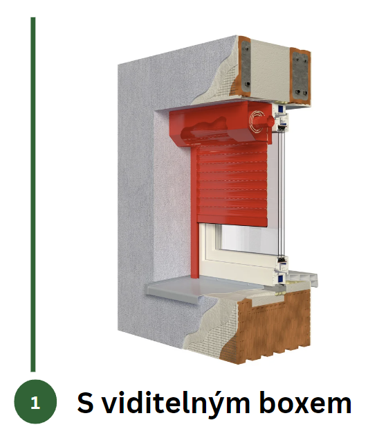 Tento typ rolet je vhodný pro různé druhy budov. Instalace půlkulatého, kulatého nebo hranatého boxu je snadná a nevyžaduje úpravy okna, zednické práce ani novou fasádu. Roletový box je vyráběn z válcovaného nebo extrudovaného hliníku.