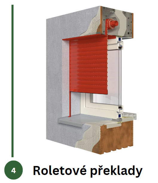 Při novostavbách lze využít roletové překlady pro čistou instalaci. Roletový překlad HELUZ je zasazen přímo do zdiva, což skrývá jak box, tak vodicí lišty, a zachovává tak estetický vzhled domu. Roletové překlady také efektivně těsní a nezpůsobují tepelné mosty. Revizní klapka usnadňuje údržbu.